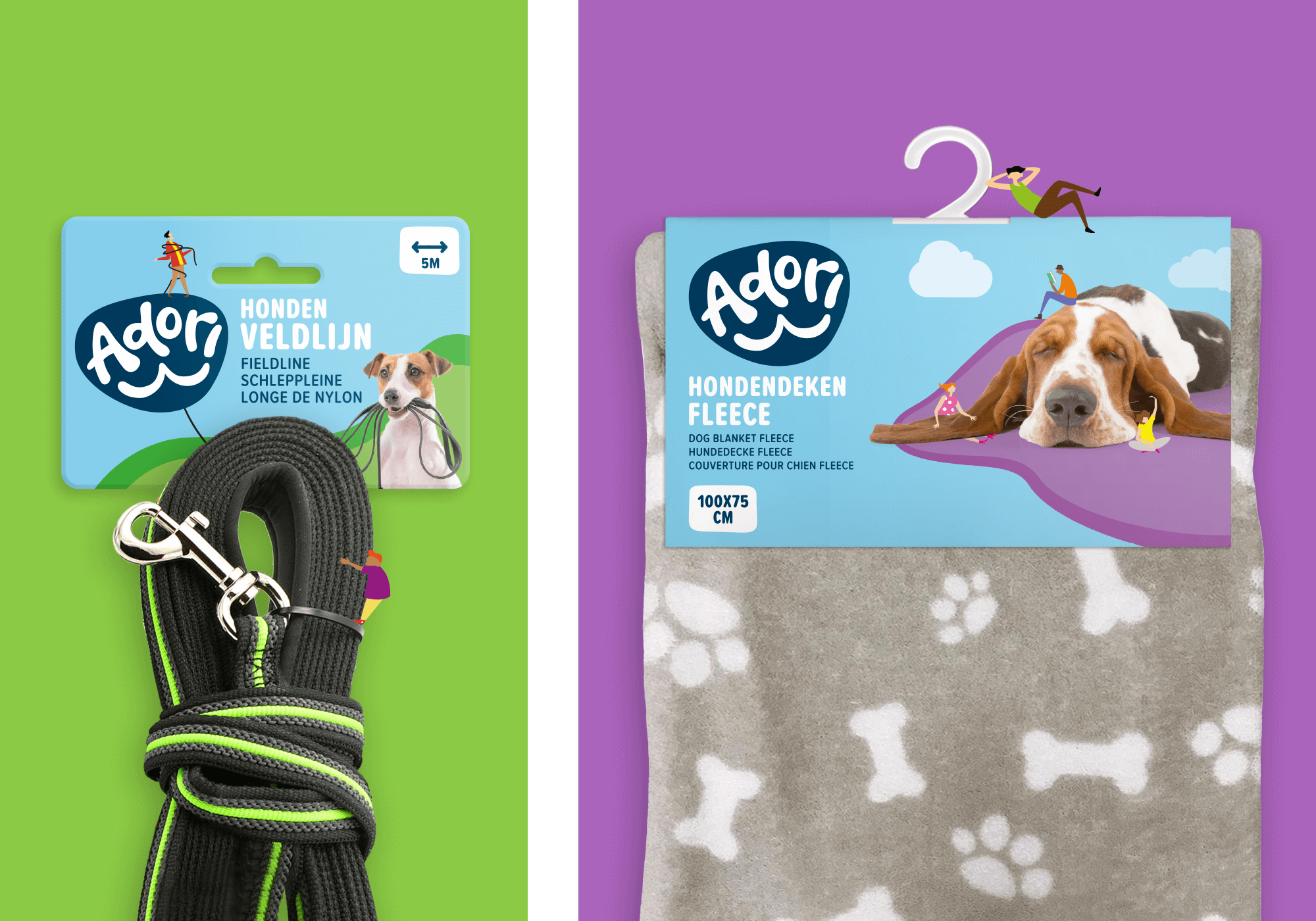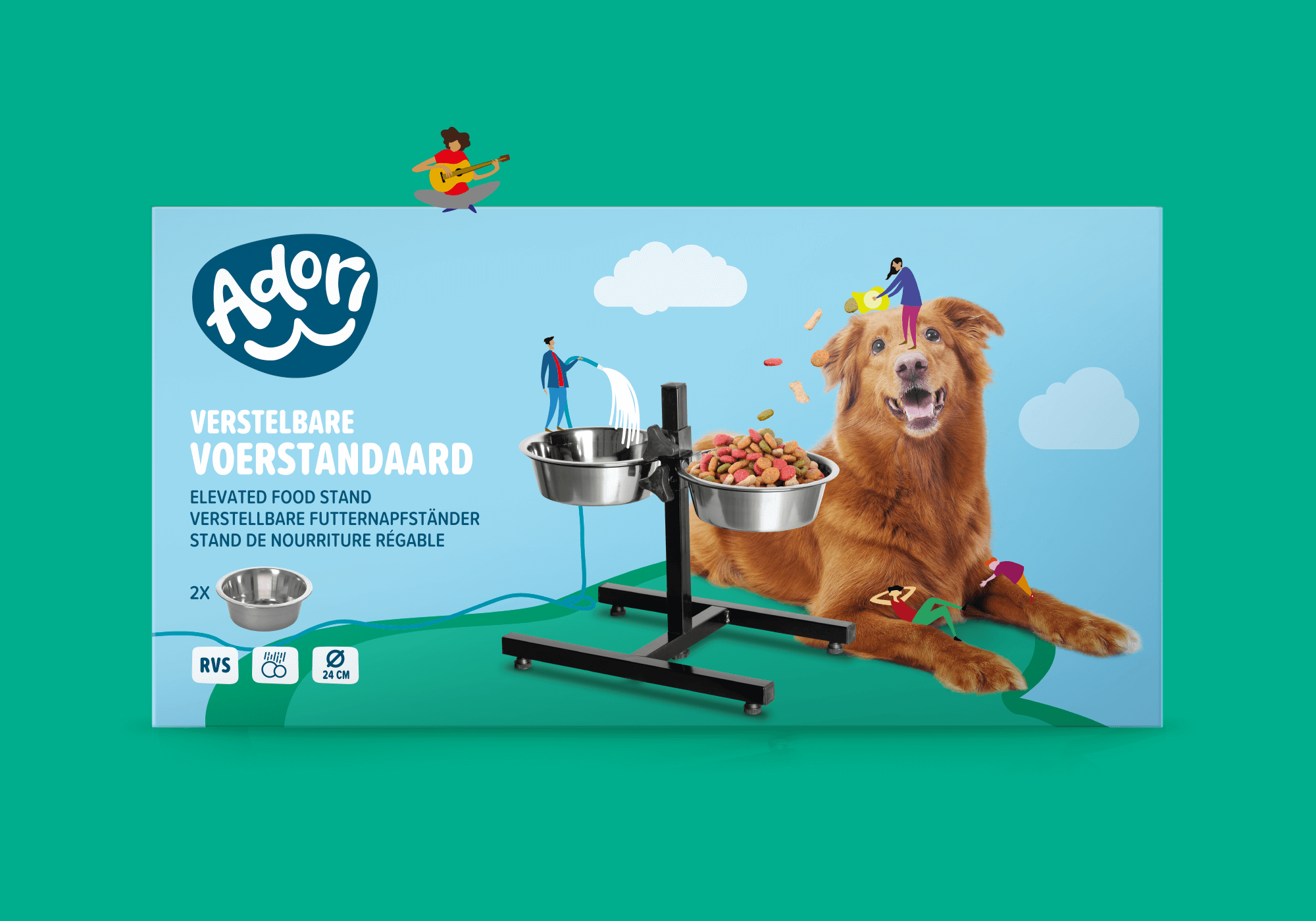 Bij Adori staat de vriendschap tussen mens en dier centraal. Deze onvoorwaardelijke vriendschap hebben wij voelbaar gemaakt door het merk op een optimistische, vriendelijke en speelse manier in een nieuw jasje te steken.