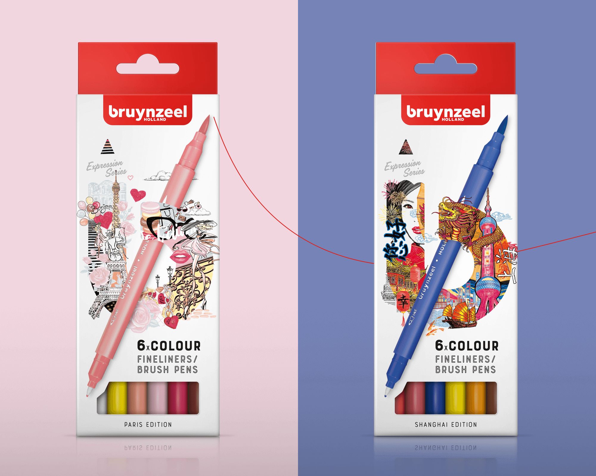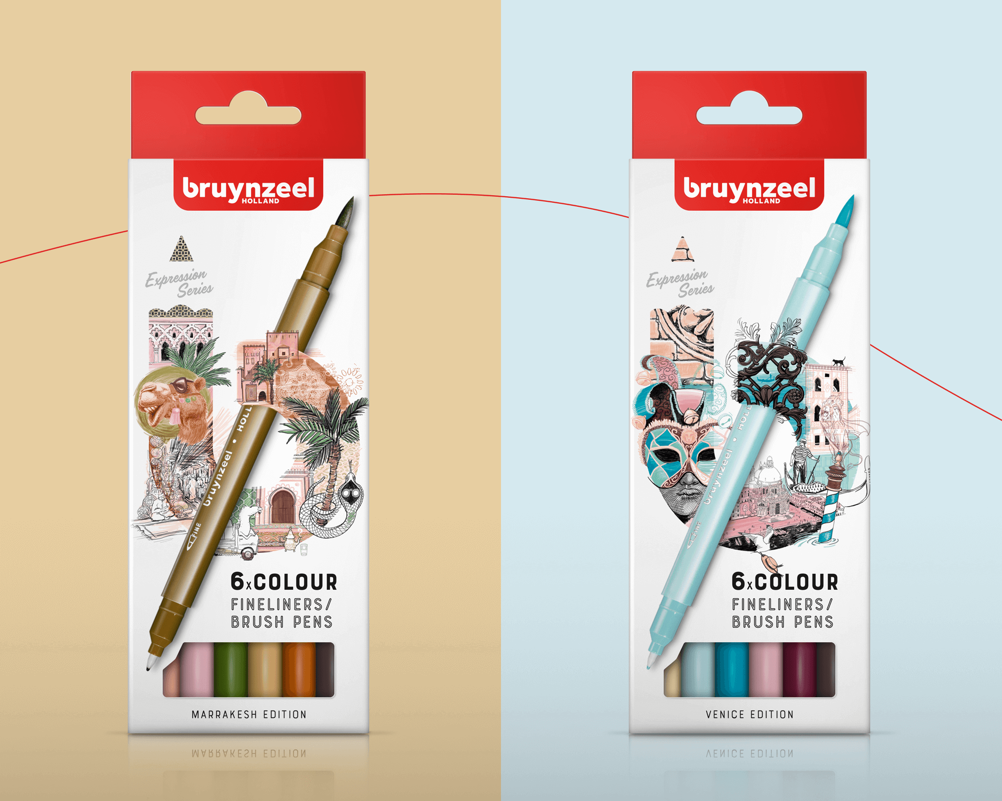 De fineliners van Bruynzeel nemen je mee op reis. Met onderstaande landenseries waan je jezelf elke keer in een andere wereld. Een wereld vol inspiratie en beleving. We nemen je mee op reis door je blik te verruimen op het gebied van verschillende culturen en kleurpaletten voor een grenzeloze creativiteit.