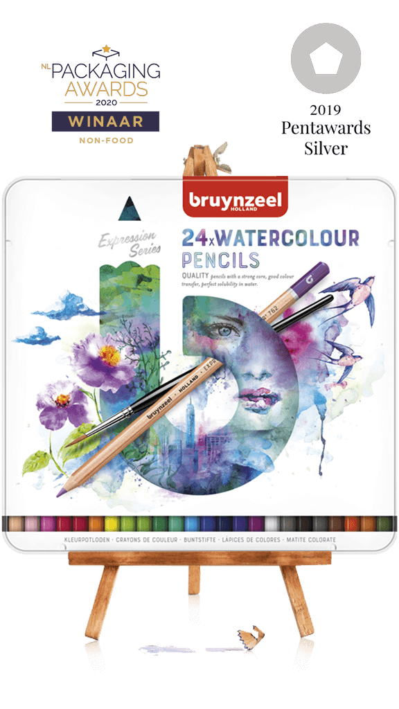 Deze trots hebben wij vertaald naar een sterke, iconische branding. Het gebogen potlood dat imagination vertegenwoordigd staat centraal op iedere verpakking en vormt de basis voor expressiviteit en eindeloze inspiratie.