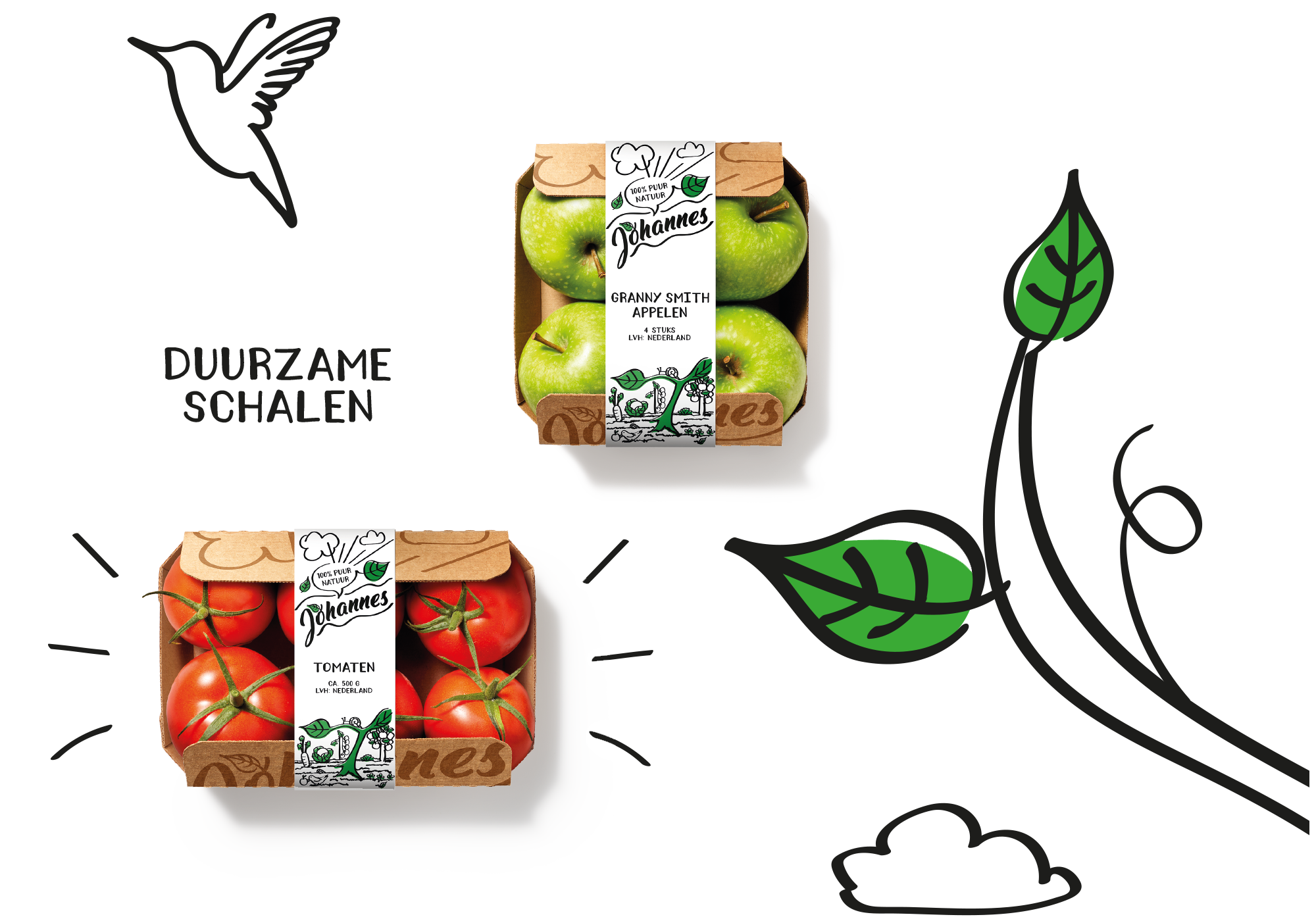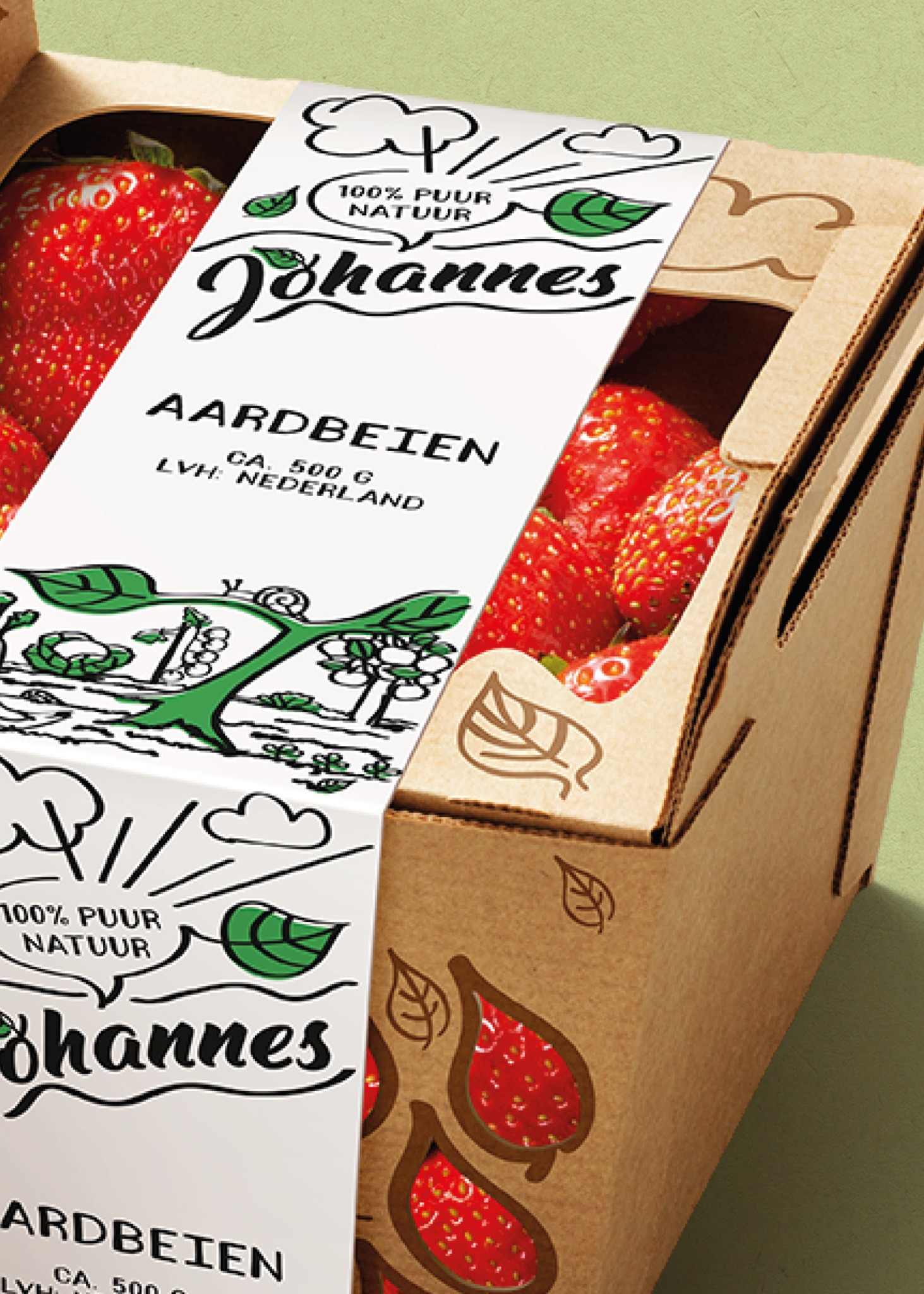 Goede producten verdienen een even zo goed podium. Dat podium hebben wij gebouwd op de merkwaarden van het merk Johannes. Johannes staat voor puur natuur, heeft niet alleen oog voor de beste producten, maar ook voor de wereld waarin we leven. Met de duurzame verpakkingen en de sympathieke grafiek creëerden wij een statement. Zorg goed voor jezelf en voor de wereld!