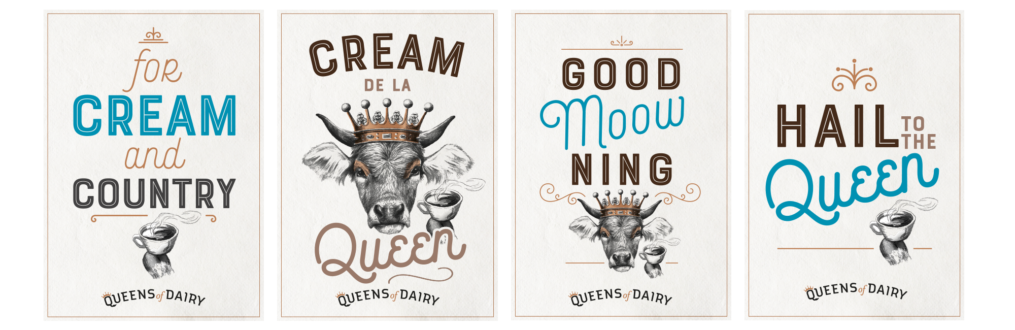 “Met de ontwikkeling van het merk Queens of Dairy heeft Guts & Glorious haar naam helemaal waargemaakt. Ze hadden het lef om met één designvoorstel te komen en kregen vervolgens alle glorie! Niet eerder heb ik meegemaakt dat naam, identity en packaging zo in-één-keer raak waren. Queens of Dairy is een eerbetoon aan de koninginnen van de zuivel en een krachtig merkplatform voor onze specialty zuivellijn."Paula van de Kamp, Olivier Prakken
