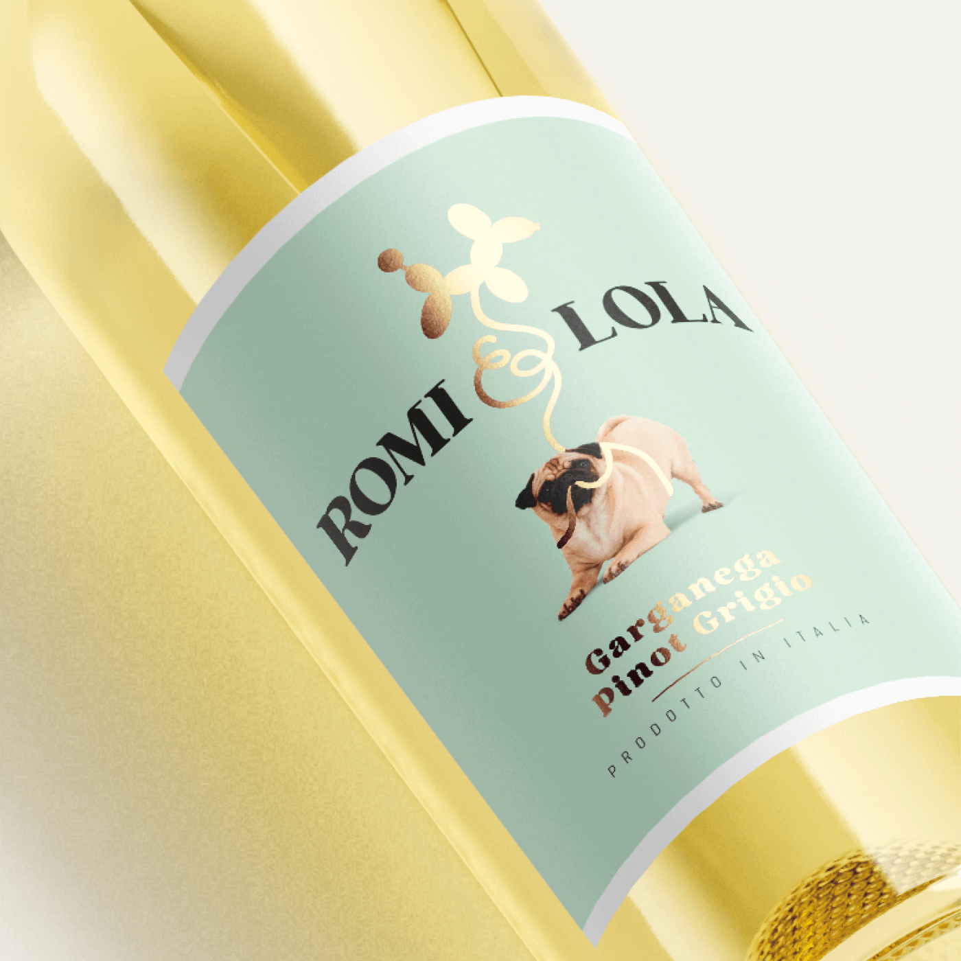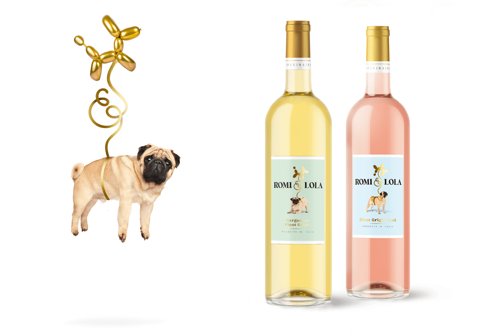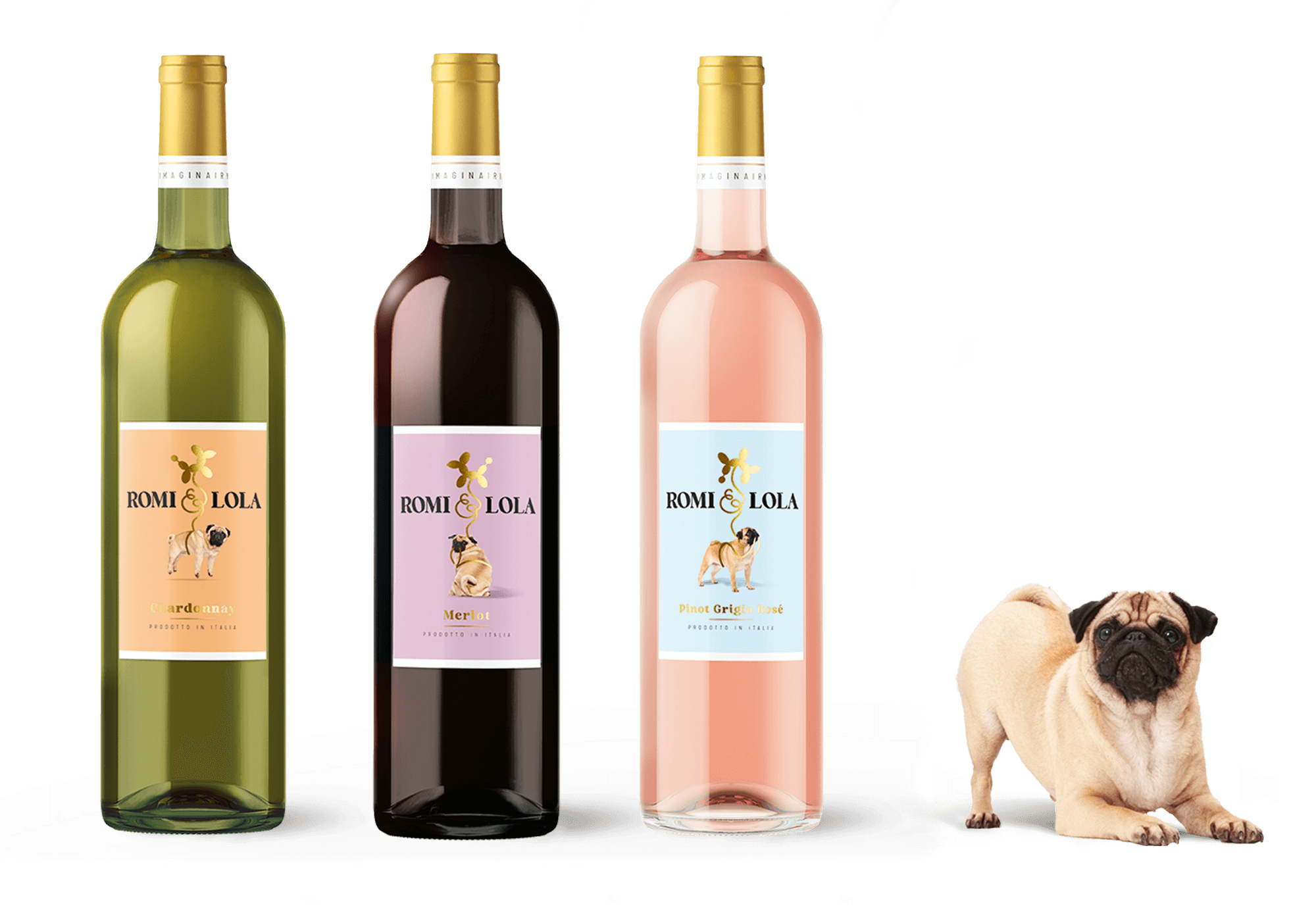 Een verhaal van twee hondjes. Romi en haar imaginary friend, Lola. Een optimistisch en toegankelijk design dat past bij de identiteit van de wijn.