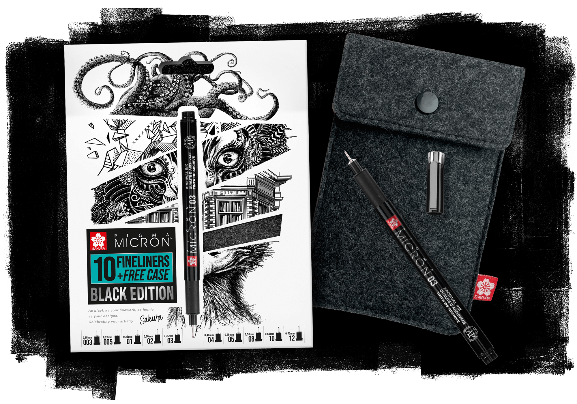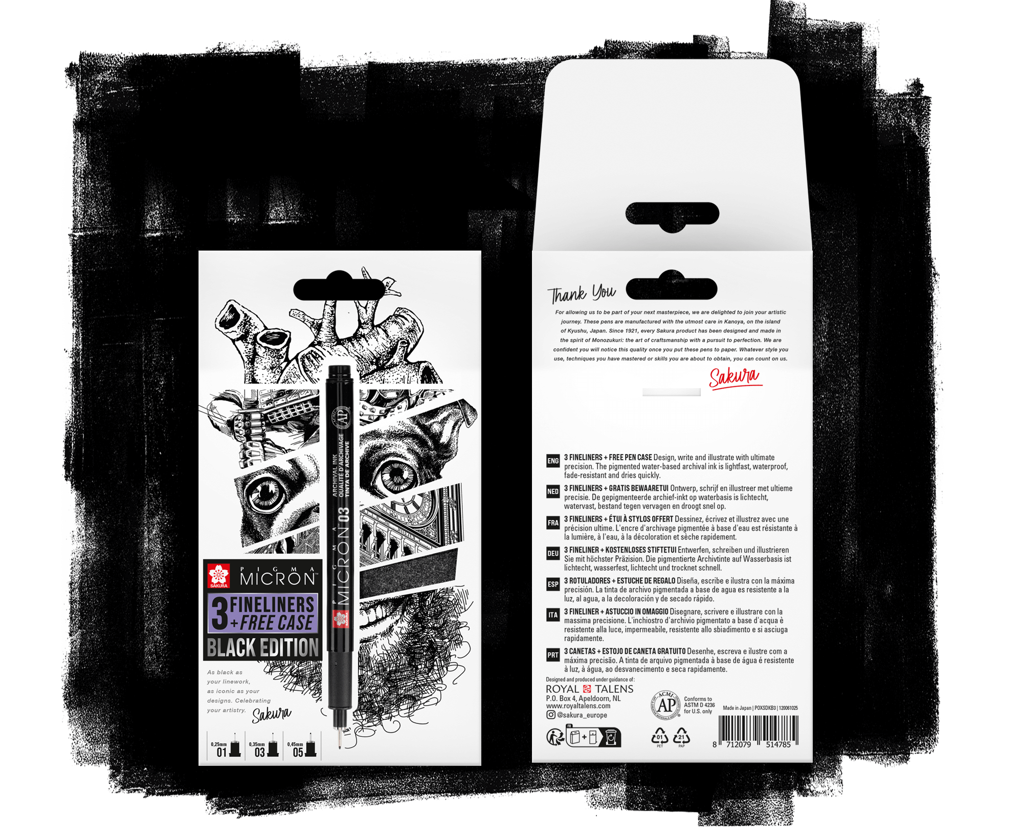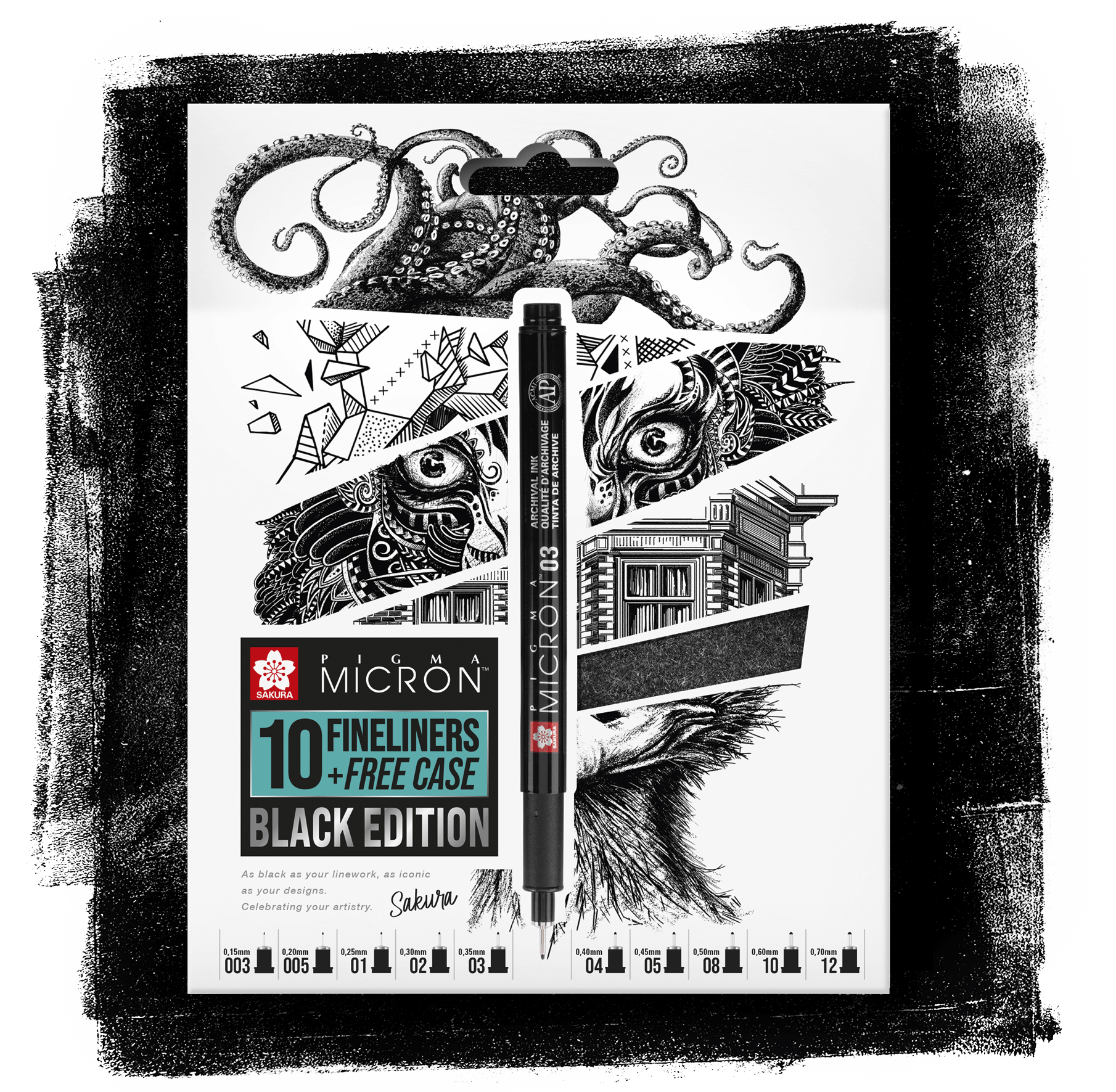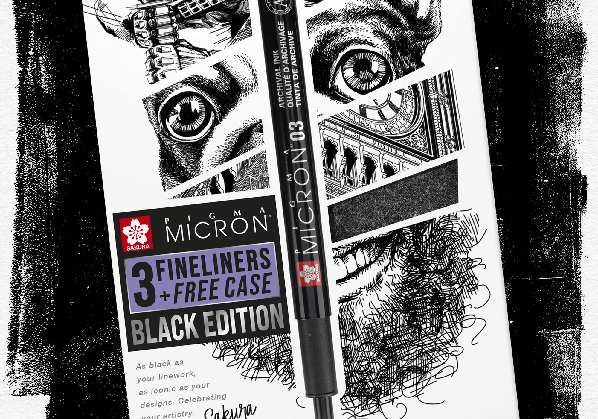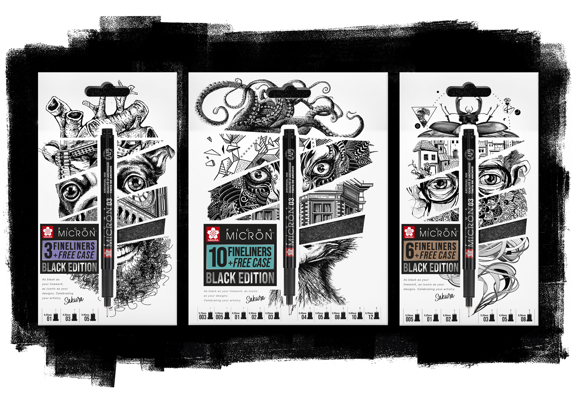 De legendarische Sakura Micron fineliner, nu beschikbaar als een speciale ‘Black Edition’ ter viering van haar diverse gebruikers en toepassingen. Wij ontwierpen het uiterlijk van de verpakkingen.