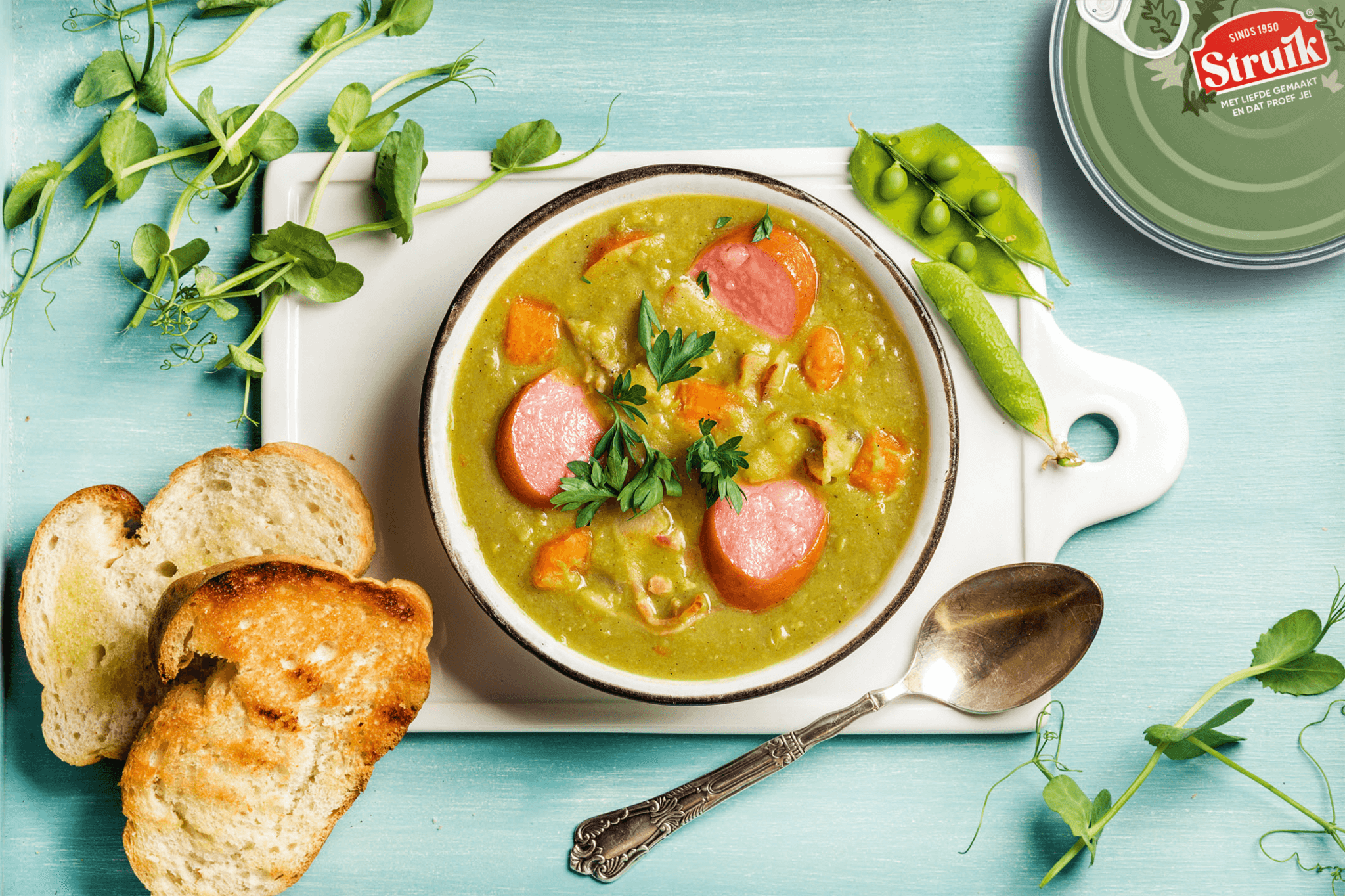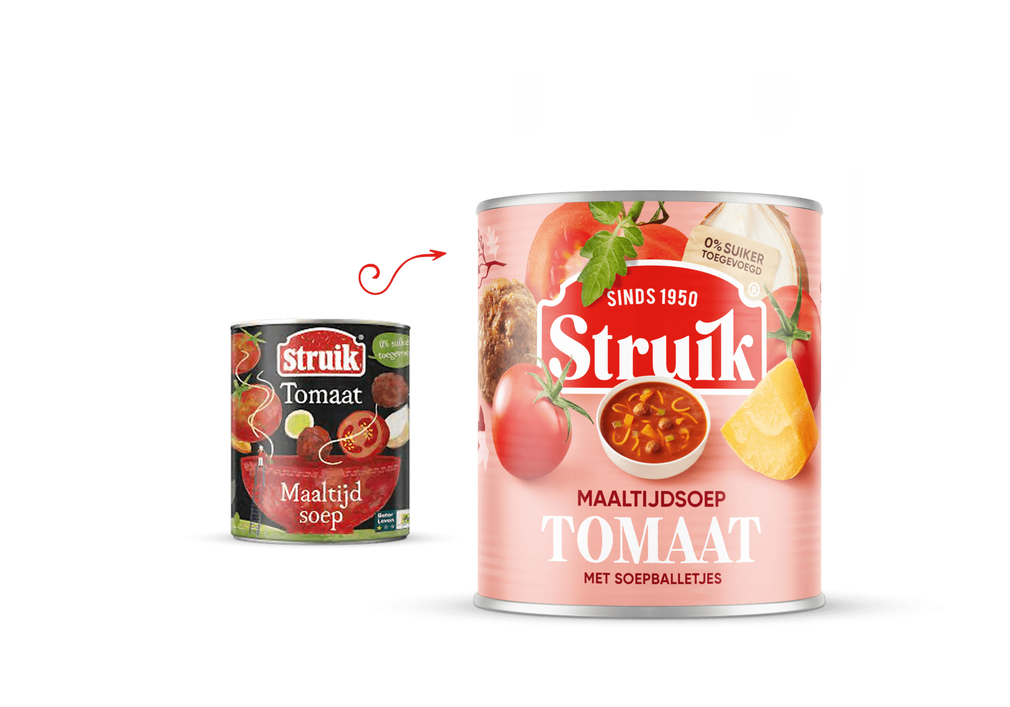 Het was een uitdaging om in een gemakscategorie zoals de conserven soepen een bewuste en gezonde uitstraling te creëren zonder geloofwaardigheid te verliezen. Je wilt je toegankelijkheid niet op het spel zetten en ook het gemak omarmen. Door traditionele elementen op een vernieuwende manier te hergroeperen ontstaat er een nieuw beeld zonder te vervreemden.