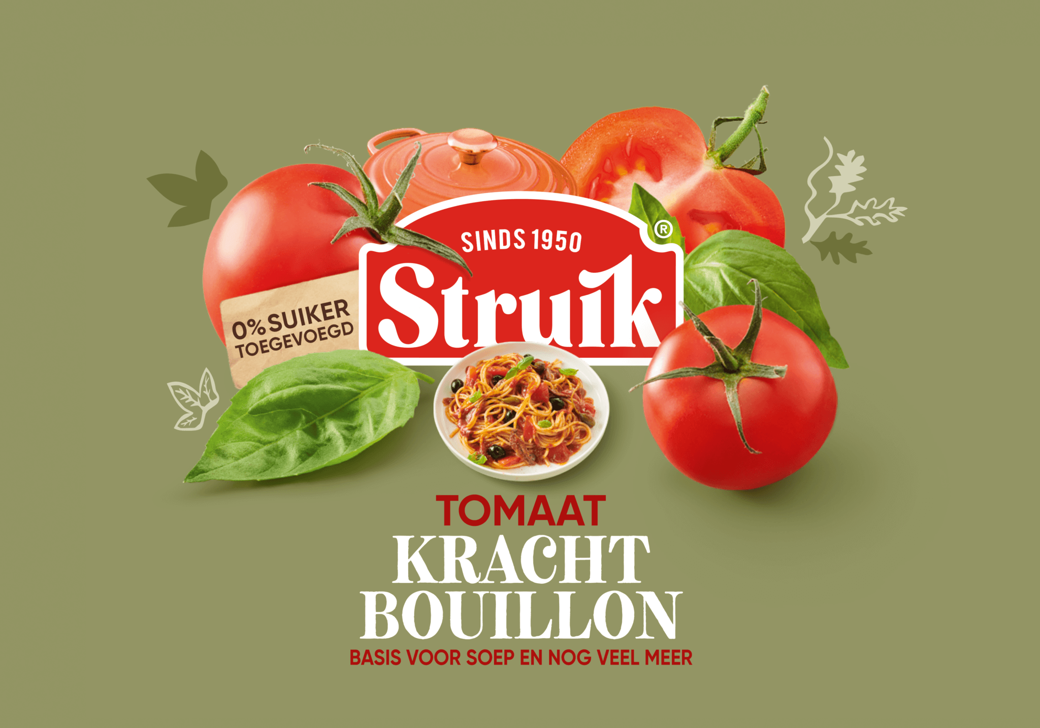 brand identity • packaging designLiefde voor lekker wordt onderstreept op een onconventionele maar toch traditionele manier. We draaiden de rollen om. Ingrediënten voeren de boventoon in hun a-typische verhoudingen en het eindproduct is hier onderdeel van. Dit alles gepresenteerd in een fris en eigentijds kleurpalet. Met deze benadering hebben we Struik weer opnieuw op de kaart gezet.